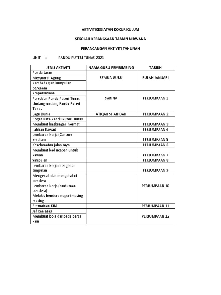 Rancangan Aktiviti Tahunan Tunas Puteri 2021 Pdf
